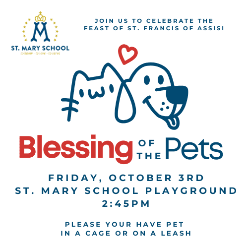 Please join us on Friday, October 3rd for our annual Blessing of the Pets.