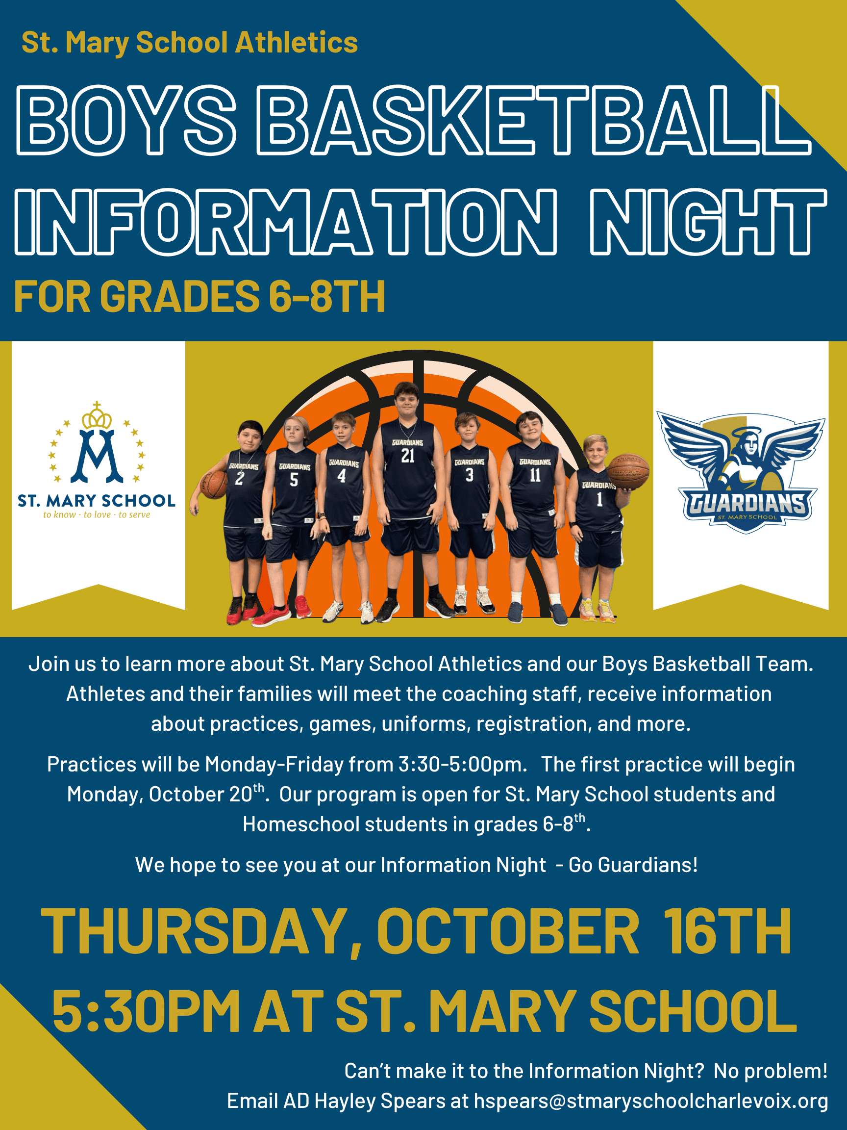 Join us on Thursday, October 16th for our 6-8th Grade Boys Basketball Information Night. Our program is available for SMS and Homeschool families. Please see our flyer for more information…