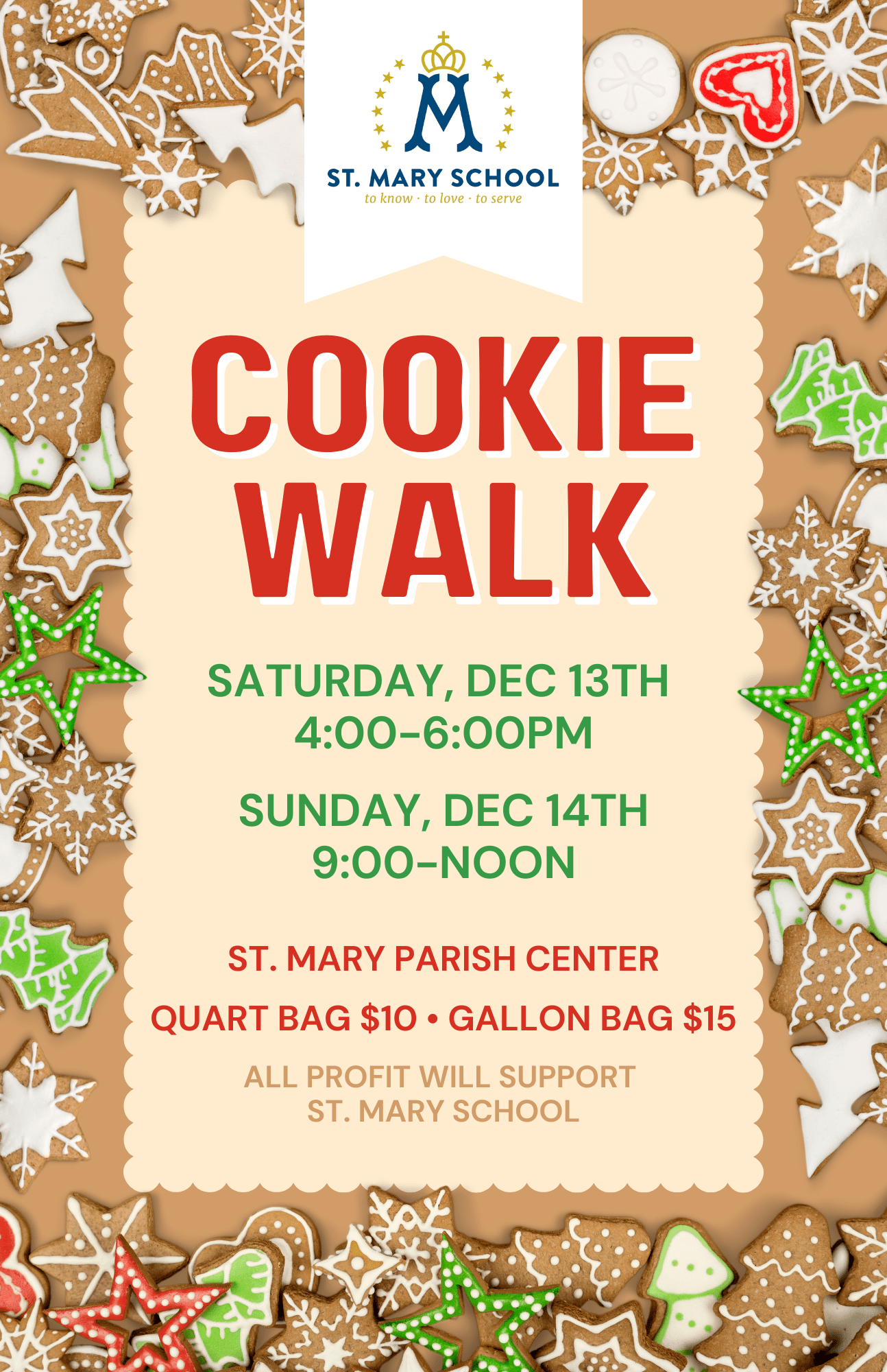 Let St. Mary School do your Christmas cookie baking for you! We will be selling your classic favorites and a variety of new holiday cookies. All proceeds will help support…