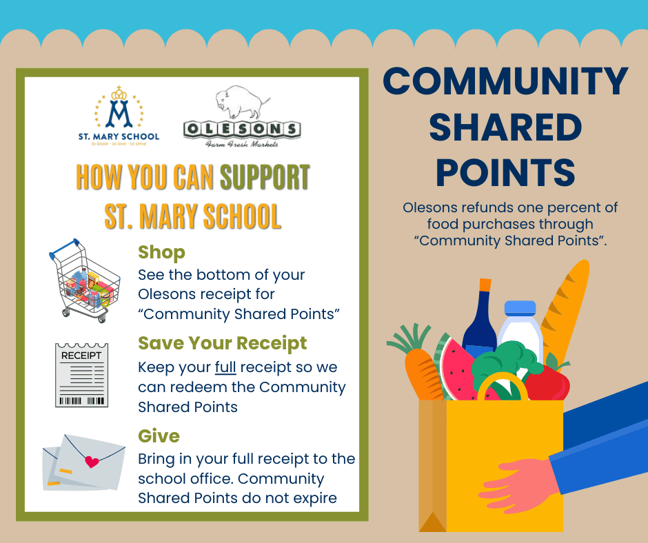 Did you know that you can turn in your "Community Shared Points" to our school? Next time you shop at Olesons, save your receipt and bring it in to us!…