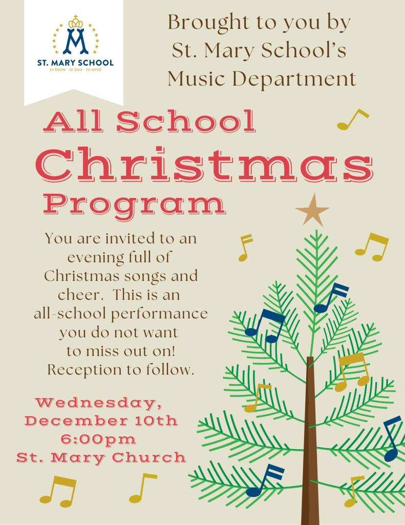 You are invited to an evening full of Christmas songs and cheer. This is an all school performance you do not want to miss out on! Reception to follow.