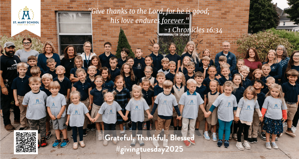 Support St. Mary School by donating today and throughout this week. Please scan the QR code below or use this link. We appreciate your support! https://www.osvhub.com/stmary…/giving/funds/giving-tuesday